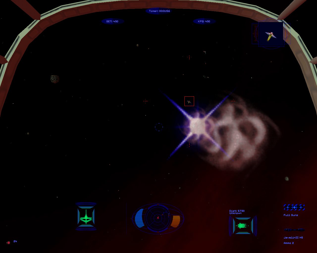 | Screenshots: | First WCP mission: approaching the Fralthi II wreck - 1024x768 The TCS Midway - 1024x768 Cockpit view: firing a missile - 1280x1024 Cockpit view: mission accomplished - 1280x1024 |